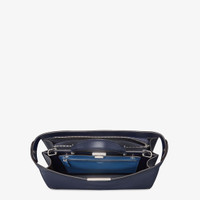 Medium Peekaboo ISeeU bag, made of dark blue Cuoio Romano leather. The interior is organized into two compartments divided by a stiff partition, the front features the iconic twist lock and the back a zipper closure. The removable interior pocket is made of light blue leather on one side and FF fabric on the other. Palladium-finish metalware. Can be carried by hand or on the shoulder thanks to the handle and adjustable, detachable shoulder strap. Made in Italy Measurements: - Height : 34 cm - Depth : 12 cm - Width : 38 cm - Weight : 1.2 kg Composition: 100% calf leather, inside: 100% calf leather, 90% polyester, 10% polyurethane Product Code: 7VA529AFC3F1JRY