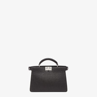 Iconic Peekaboo ISeeU XCross bag, made of black full-grain leather. The interior is organized into two compartments divided by a stiff partition, the front features the iconic twist lock and the back a zipper closure. Features a tone on tone leather lining, two compartments separated by a stiff partition, a contrasting-color cardholder slot and palladium-finish metalware. Can be carried by hand or on the shoulder thanks to the handle and adjustable, detachable shoulder strap in webbing with Fendi lettering. Made in Italy Composition: 100% Calfskin, interior: 100% Calfskin, 90% Polyester, 10% Polyurethane Model height: null Size worn: null Measurements: - Height : 14.5 cm - Depth : 6 cm - Width : 23 cm Product Code: 7VA582AMA3F1JS2