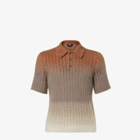 Short-sleeved polo shirt. This style has a classic collar closed with matching-color button. Made of plated rib knit in a blend of wool and mohair. The multicolored gradient pattern in shades of brown and gray is inspired by an archive Fendi look presented on the catwalk in 1998. Made in Italy Composition: 67% mohair, 30% polyamide, 3% wool, 70% wool, 30% cashmere Size worn: 48 IT. The model is 188 cm tall Product Code: FZC162AOZUF0XDA