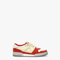Fendi Match compact design sneakers with vintage label on tongue. Branded with FF pattern sewn on the side and embossed Fendi lettering on the sole. Made from red leather with white leather details and FF motif in cream-colored leather. Embellished with tone on tone terry collar and laces. Covered rubber cupsole with light gray bumper. The style includes a second pair of white cotton laces. Made in Italy Composition: 100% Calfskin, inside: 69% Polyester, 28% Polyamide, 3% Elastane Product Code: 7E1493AI1NF1H1D