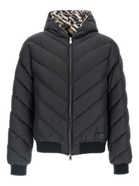 reversible quilted jacket Highlights - Black - Reversible - All-over print lining - Hood - Zip closure - Long sleeves Made in Italy Composition Outer: Polyester 100% Lining: Polyester 100%, Down 100% Washing instructions Read Manufacturer Guidelines