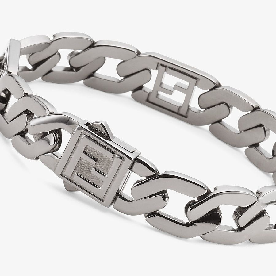 Chain bracelet with FF mesh. Hook buckle clasp. Made of metal with a dark ruthenium finish. Made in Italy Composition: 100% Brass