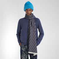 Rectangular scarf made of wool micro FF Jacquard in light gray and blue. Embellished with small white fringes at the ends. Made in Italy Composition: 100% fleece wool Product Code: FXS373ATQBF03NU