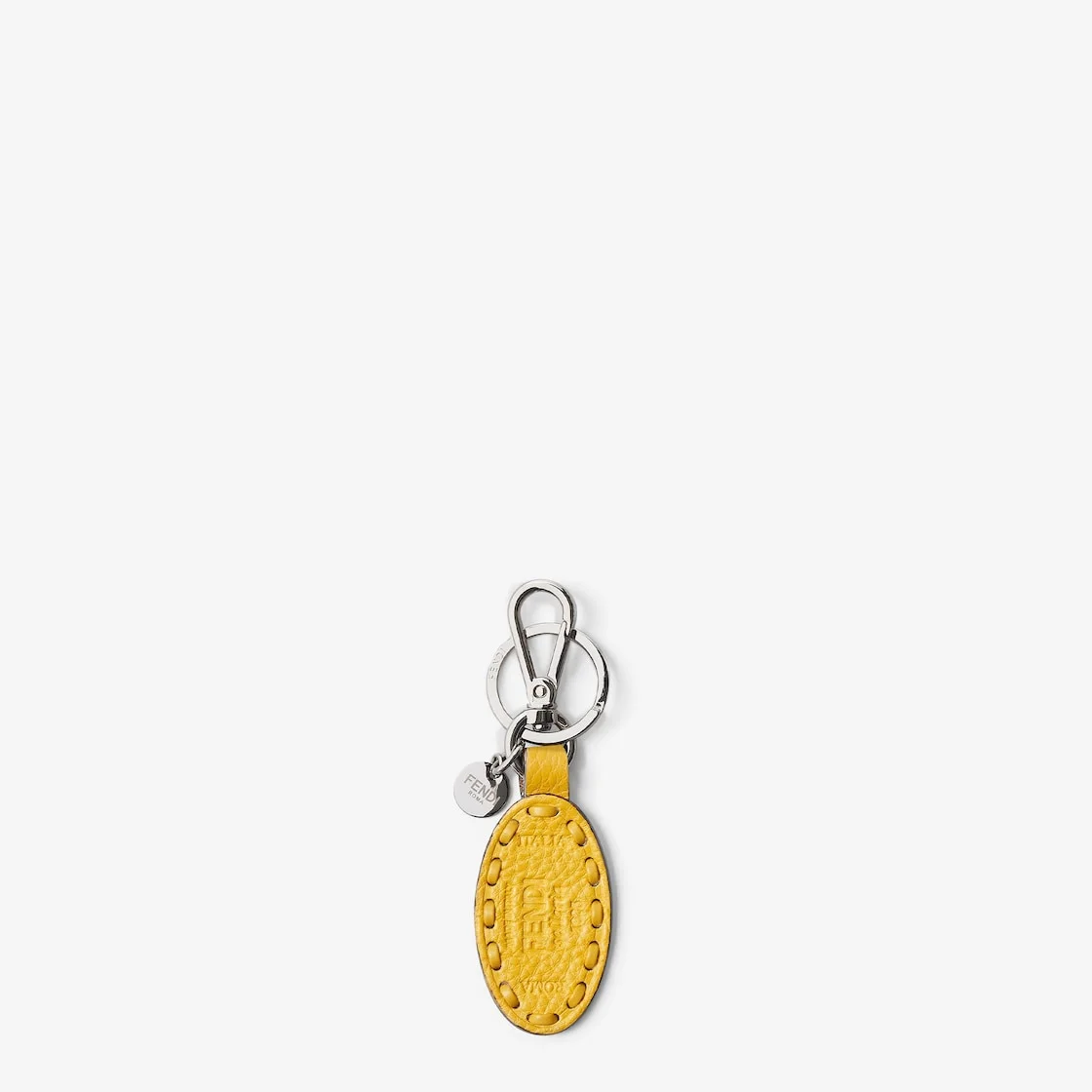 Key ring with clip and logo ring. Made of yellow Cuoio Romano leather, finished with embossed Fendi Selleria logo and 12 hand-sewn macro topstitches, an emblem of the iconic Selleria workmanship handed down through generations of Fendi artisans since 1925. Palladium-finish metalware. Made in Italy Composition: 100% calf leather Product Code: 7AS423QZYF0M8A