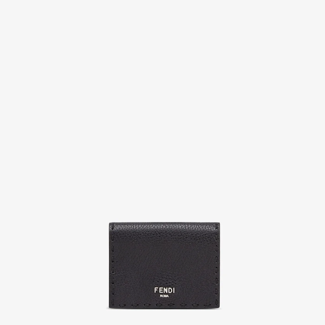 Wallet with two internal compartments for bills and outer pocket with snap closure. Made of black Cuoio Romano leather. Embellished with Fendi Roma lettering and edges finished with hand-sewn Selleria stitching. Palladium-finish metalware. Made in Italy Composition: 100% calf leather, inside: 62% cotton, 38% polyurethane Product Code: 7M0280AP3BF0GXN