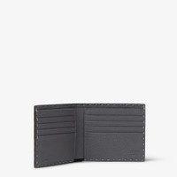 Bi-fold wallet, organized inside with eight card slots and two bill compartments. Made of Mercury blue Cuoio Romano leather with 134 hand-sewn macro topstitches, an emblem of the iconic Selleria workmanship handed down through generations of Fendi artisans since 1925. Contrasting dark gray leather lining. Metal Fendi Roma logo with a palladium finish. Made in Italy Composition: 100% calf leather, inside: 53% cotton, 47% polyurethane Product Code: 7M0193AW2FF1USJ