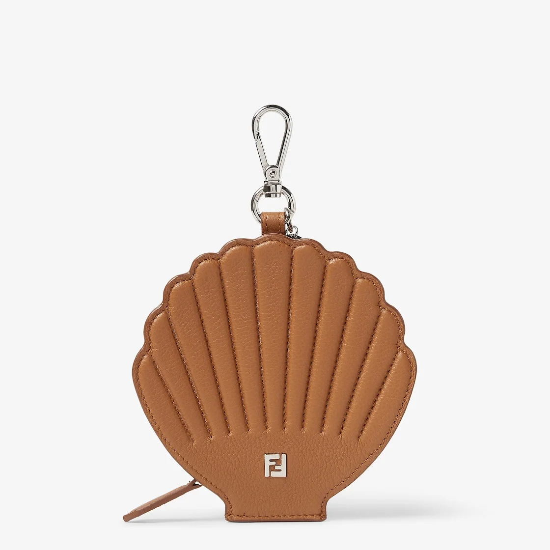 Bag charm made of brown full-grain leather with metal FF detail. The charm is distinguished by its exclusive shell-shaped design with a zipped compartment. Palladium-finish metalware with logo clip. Made in Italy Composition: 100% calf leather Product Code: 7AS383APDRF0CGB