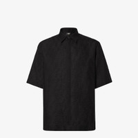 Short-sleeved, oversize shirt. Mid-Italian collar and straight hem. Concealed button closure. Made of black linen FF jacquard. Made in Italy Composition: 83% linen, 17% cotton, 8 buttons: mother-of-pearl Size worn: 48 IT. The model is 189 cm tall Product Code: FS1317AU6YF0QA1