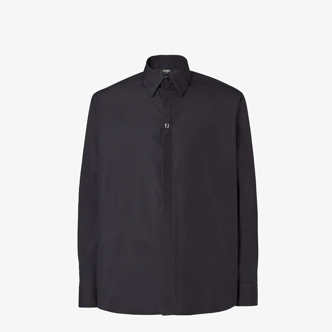 Regular-fit shirt with Italian-style collar. Front fastening with concealed buttons. Made of black cotton. Customized with palladium metal micro FF detail on the front. Made in Italy Composition: 100% cotton, 13 buttons: mother-of-pearl Product Code: FS0585AVDLF0QA1