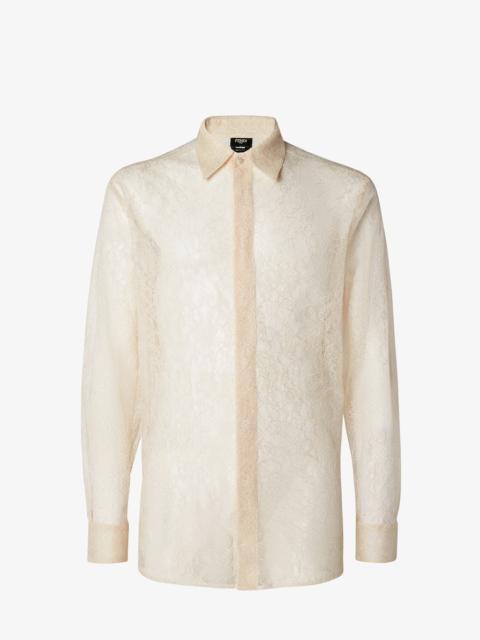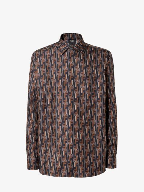 Shirt with button-down collar and long sleeves. Comfort fit. Front closure with concealed buttons. Made of silk with Fendinity all-over print in brown and black. Made in Italy Composition: 100% silk, 13 buttons: mother-of-pearl Size worn: 48 IT. The model is 188 cm tall Product Code: FS1319AVDBF1TRS