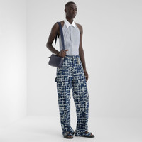 Sleeveless shirt with halter neck and bare back. Mid Italian collar and rounded hem. Fastened with buttons on the back. Made of blue and white striped cotton viscose. Pleated plastron on the front. Embellished with Made in Fendi label sewn on the back of the collar. Made in Italy Composition: 85% viscose, 15% polyamide, 12 buttons: 100% mother of pearl Size worn: 48 IT. The model is 187 cm tall Product Code: FS1248AR6BF1O0X