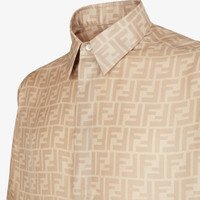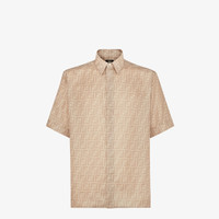 Shirt with Italian-style collar and short sleeves. Regular-fit style. Concealed button closure. Made of beige all-over FF printed silk. Made in Italy Composition: 100% silk, 8 buttons: mother of pearl Fit: Regular Size worn: 48 IT. The model is 189 cm tall Product Code: FS0795AKEEF0GQK