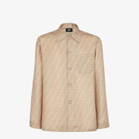 Fluid pyjama shirt. Patch pocket on the chest. Front fastening with covered buttons. Made of beige all-over FF printed silk. Made in Italy Composition: 100% silk Size worn: 48 IT. The model is 189 cm tall Product Code: FS1300AKEEF0GQK