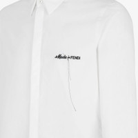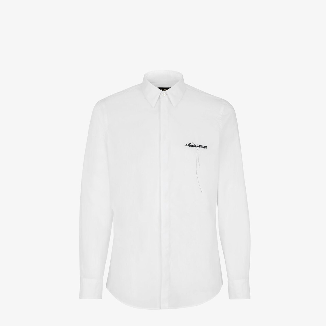 Regular-fit shirt with Italian-style collar. Concealed closure with buttons. Made of white cotton. Customized with contrasting Made in Fendi lettering embroidered on the chest. Made in Italy Composition: 100% cotton, buttons: 100% mother of pearl Size worn: 48 IT Product Code: FS0585AR64F0QA0