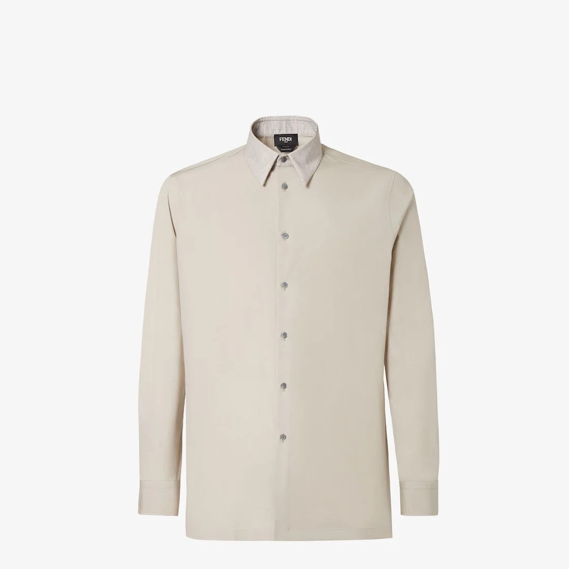 Regular-fit shirt with Italian-style collar. Button closure. Made of beige cotton. The collar is customized with striped FF print in the same colors. Made in Italy Composition: 100% cotton, 12 buttons: mother-of-pearl Product Code: FS0751AVDDF0GDM