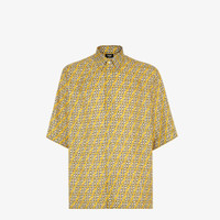 Oversized shirt. Semi Italian collar, shorts sleeves with turn-ups and straight hem. Covered button closure. Made of silk with a yellow, brown and white FF Labyrinth jacquard. Made in Italy Composition: 100% silk, 8 buttons: mother-of-pearl Size worn: 48 IT. The model is 188 cm tall Product Code: FS0966ASESF0RY3