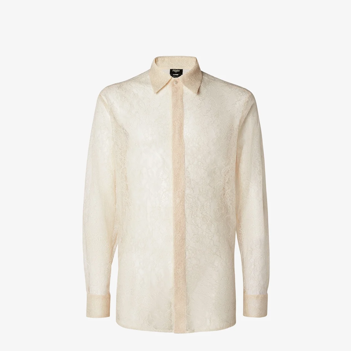 Shirt with button-down collar and long sleeves. Comfort fit. Front closure with concealed buttons. Made entirely in white lace with see-through effect. Made in Italy Composition: 51% viscose, 49% polyamide, 13 buttons: mother-of-pearl Size worn: 48 IT. The model is 188 cm tall Product Code: FS1319AVKBF0QG1