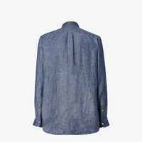 Comfort fit shirt with button-down collar and long sleeves. Patch pocket on the chest. Visible button closure. Made of blue cotton chambray. Embellished with FF detail embroidered on the front pocket. Made in Italy Composition: 100% cotton, 3 buttons: mother of pearl Fit: Comfort Product Code: FS1296AVZGF0QA2