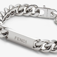 Chain link bracelet closed with clip. Made of nickel-free palladium-finish metal. Decorated with a plaque and Fendi lettering. Made in Italy Composition: 100% Brass