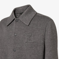 Single-breasted blouson jacket with shirt collar. Ribbed cuffs and edges. Diagonal double welt pockets. Front closure with concealed press studs. Made of gray wool double fabric. Contrasting FF lining in black and gray. Finished with embossed FF detail on the chest. Made in Italy Composition: 99% fleece wool, 1% silk, trim: 41% acrylic, 41% wool, 15% polyamide, 3% elastane, lining: 100% cupro Size worn: 48 IT. The model is 188 cm tall Product Code: FW1413AVIXF1M2T