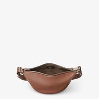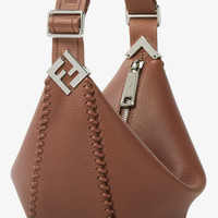 Small Fendi Melon crescent-shaped messenger bag. Made of brown full-grain leather, with handmade tone-on-tone threading. Decorated with FF metal appliques on the corners. Zipper closure and palladium-finish metalware. Technical fabric adjustable cross-body strap embellished with FENDI lettering. Made in Italy Composition: 100% calf leather, inside: 90% polyester, 10% polyurethane Product Code: 7VA635AUH0F1SK2