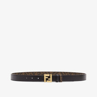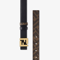 Reversible belt with FF Squared stud buckle. Made of black leather. Brown FF canvas lining. Gold-finish metalware. Made in Italy Composition: 100% calf leather, 49% polyurethane, 28% cotton, 23% polyester, back: 100% calf leather Product Code: 7C0511AFF2F1A94