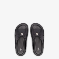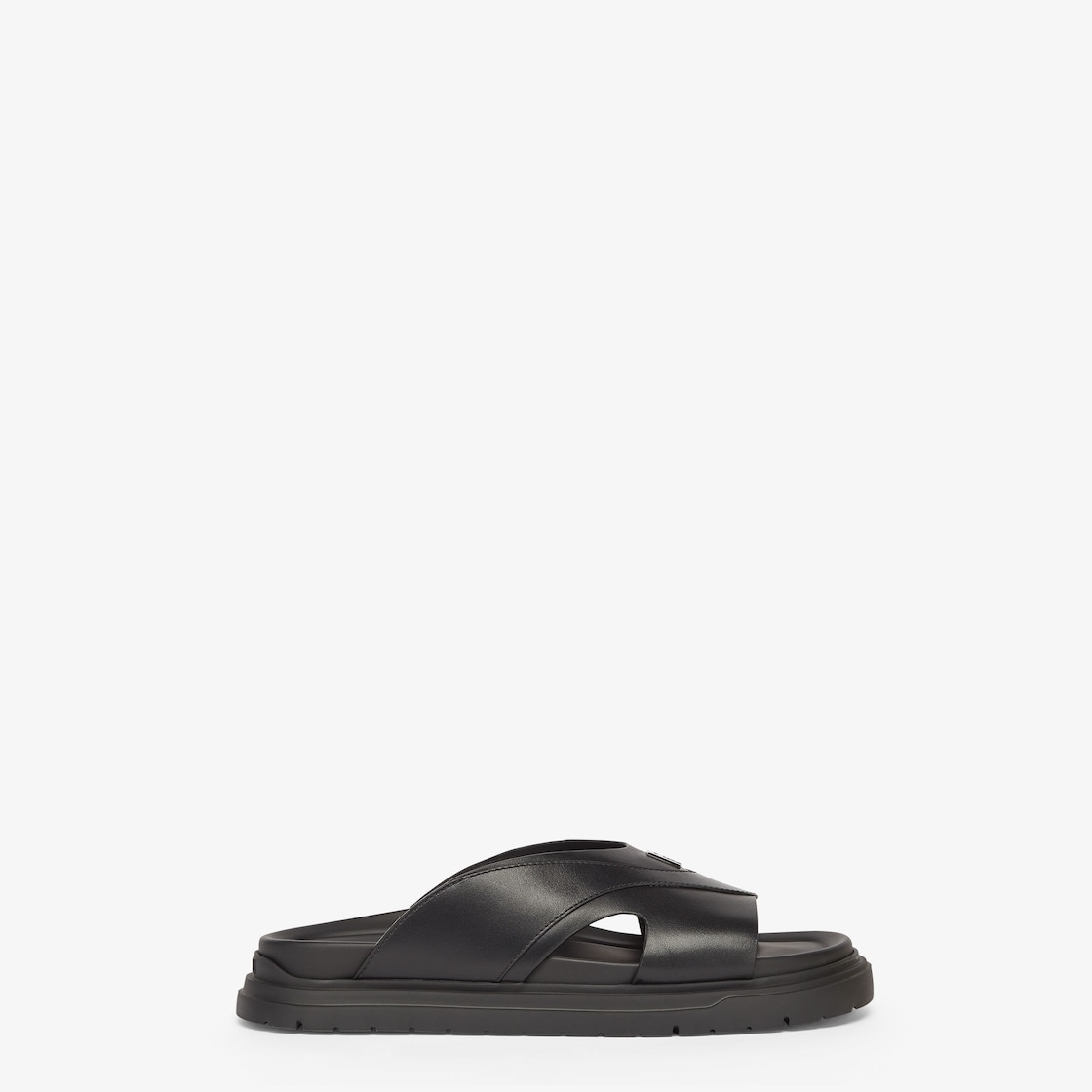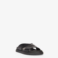 Double-band sandals. Non-slip rubber soles. Made of black leather. The band is embellished with a palladium-finish metal FF applique. Made in Italy Composition: 100% calf leather, interior: 100% calf leather Product Code: 7X1673NA7F0QA1