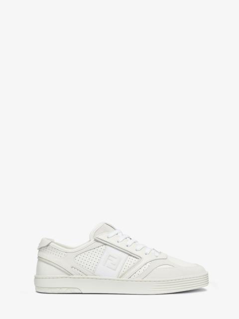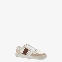 Lace-up sneakers. Made of beige leather. Brown suede details. Embellished with micro perforations at the sides and ribbon with FF embroidery. Rubber sole with Fendi Roma lettering at the back. Made in Italy Composition: 100% calf leather, interior: 100% calf leather Product Code: 7E1631A1GVF1MDS