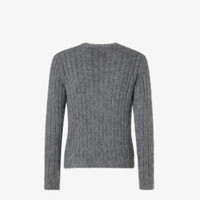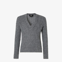 Long-sleeved slim-fit jumper with V neck. Made of gray wool and mohair yarn with flat ribbing. Embellished with ribbed edges. Made in Italy Composition: 67% mohair, 30% polyamide, 3% wool, 70% wool, 30% cashmere Size worn: 48 IT. The model is 187 cm tall Product Code: FZE068AVNTF0XDA