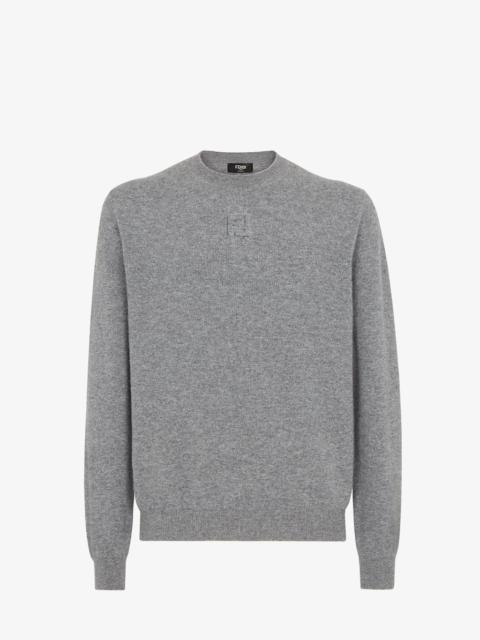 Regular-fit crew-neck pullover. Made of light gray wool yarn in a fisherman’s rib knit. Embellished with matching maxi Fendi lettering embroidered in yarn on the front. Made in Italy Composition: 100% fleece wool Product Code: FZX091AW0CF1J2A
