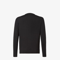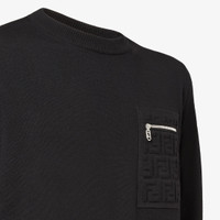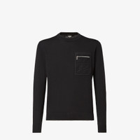 Long-sleeved crew-neck sweater. Regular fit. Made of black wool yarn. The zipped breast pocket is embellished with a tone-in-tone embossed FF and palladium-finish Fendi O’Lock metal slider. Made in Italy Composition: 100% fleece wool, 1 button: mother-of-pearl Fit: Regular Product Code: FZE035ATMOF0QA1