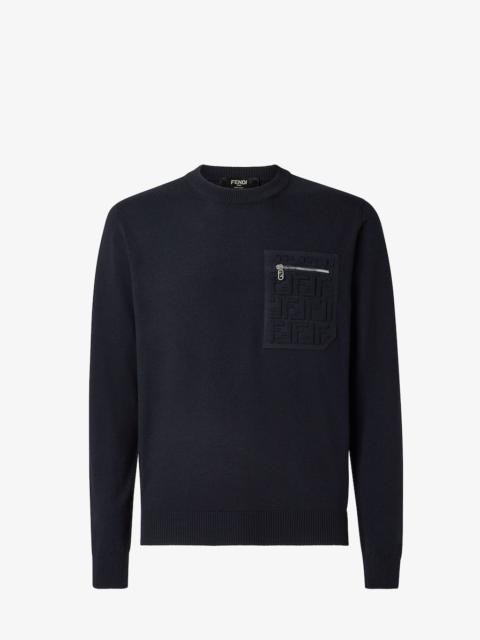 Long-sleeved crew-neck sweater. Regular fit. Made of green wool yarn. The zipped breast pocket is embellished with a tone-in-tone embossed FF and palladium-finish Fendi O’Lock metal slider. Made in Italy Composition: 100% fleece wool, 1 button: mother of pearl Fit: Regular Product Code: FZE035ATMOF0GZ4