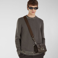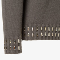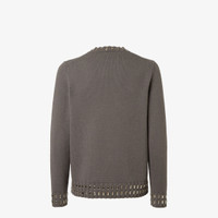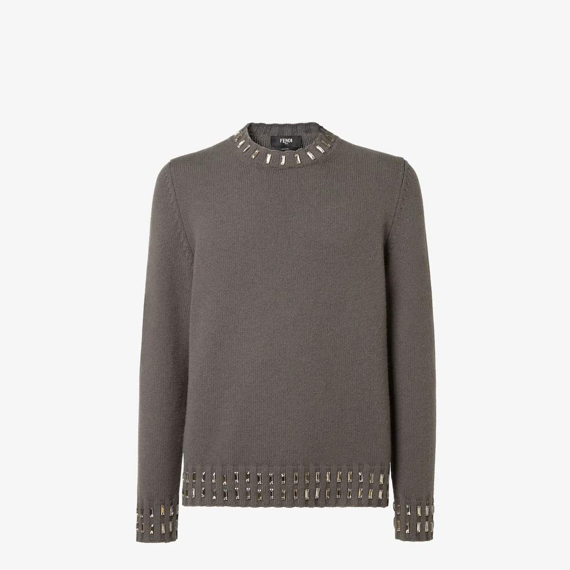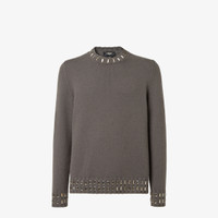 Regular-fit crew-neck pullover. Made of a gray cashmere and wool yarn. Finished with natural baguette crystals on the ribbed trim. Made in Italy Composition: 70% wool, 30% cashmere, 1 buttons: mother-of-pearl Size worn: 48 IT. The model is 188 cm tall Product Code: FZX091AOZRF0UU0
