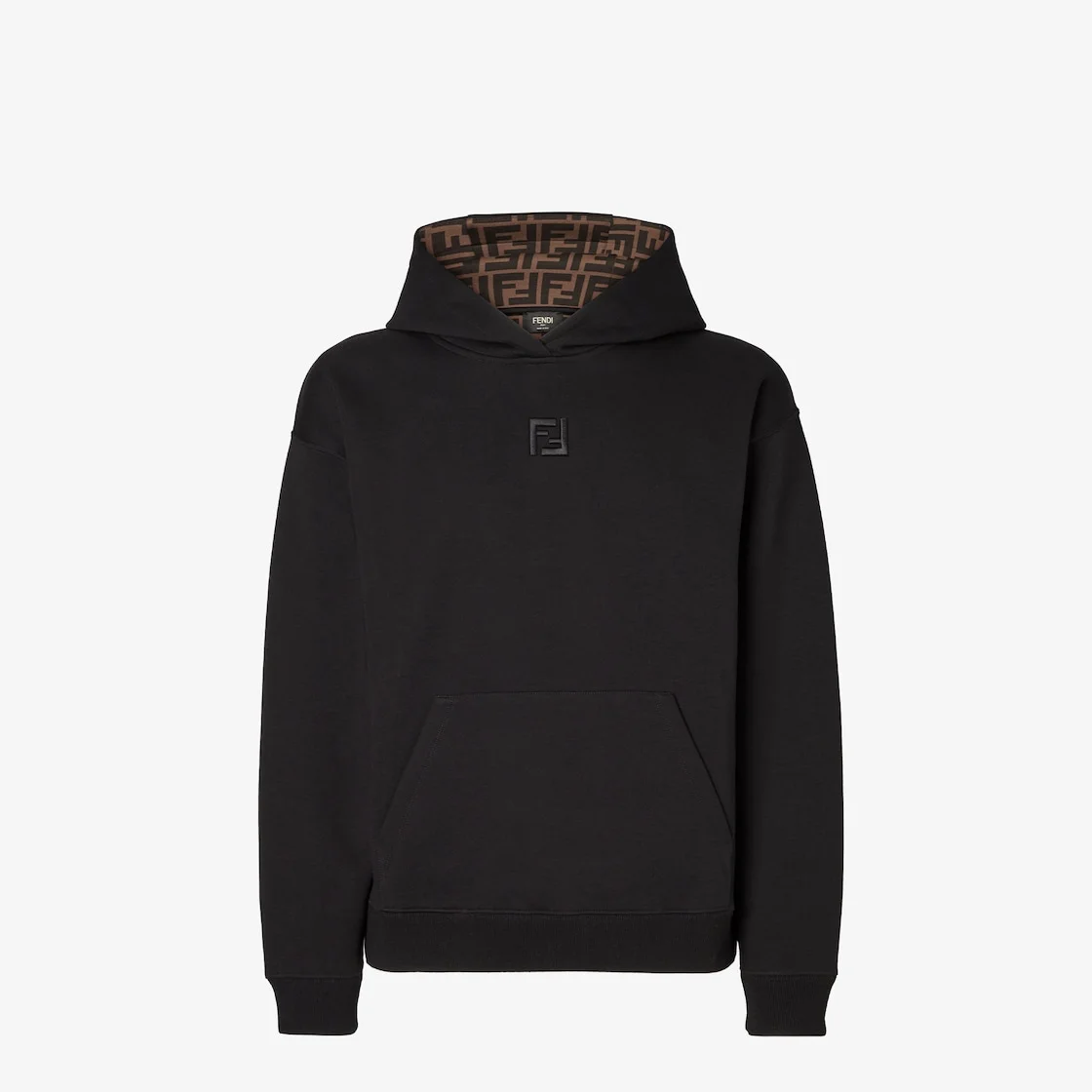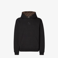 Long-sleeved sweatshirt with drawstring hood. Pouch pocket at the front. Made of black melange cotton. Hood lining in gray and black FF. Embellished with matching FF embroidery in the centre of the chest. Made in Italy Composition: 86% cotton, 14% polyamide, 100% cotton Fit: Loose Product Code: FY1143ATL9F0QA1