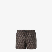 Swim shorts with elasticated waistband and drawstring. Made of fabric with brown FF motif. Made in Italy Composition: 100% polyester, lining: 82% polyamide/nylon, 18% elastane spandex Fit: Fitted Size worn: 48 IT. The model is 190 cm tall Product Code: FXB077A79FF13IZ