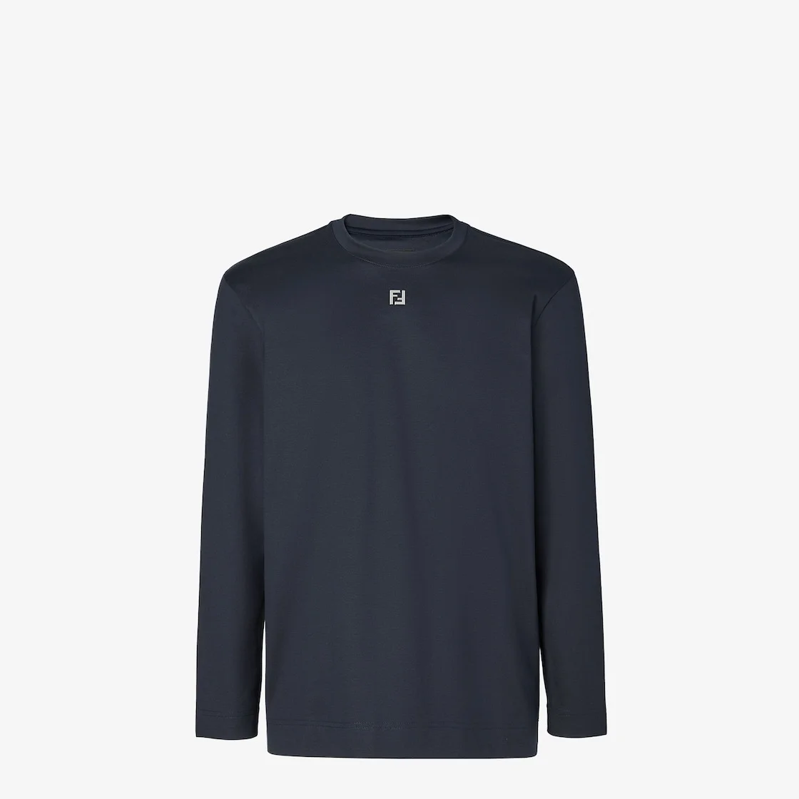 Regular-fit, long-sleeved crew-neck T-shirt. Made of dark blue pure cotton with a small metal FF logo applied on the front. Made in Italy Composition: 100% cotton, 1 button: mother-of-pearl Product Code: FY1187ARYYF0PTH
