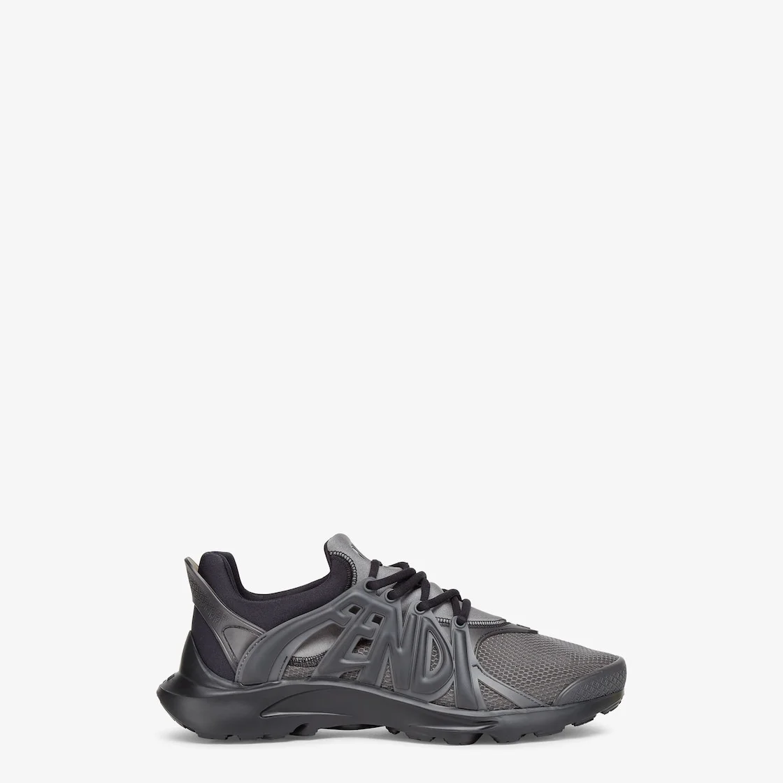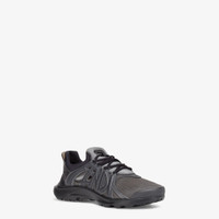 Slip-on sneakers made of black technical mesh with gray neoprene details. Oversized Fendi lettering on the sides and semi-transparent rubber details. Lightweight rubber flexible running sole. Made in Italy Composition: 100% polyester, inside: 80% polyamide, 20% elastane, 100% thermoplastic polyurethane Product Code: 7E1667AQXFF1OU5