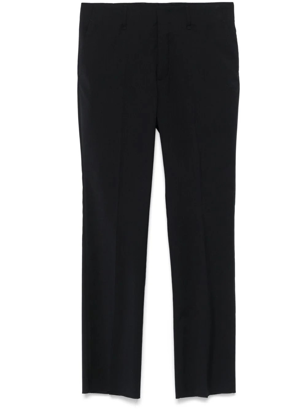 virgin-wool tailored trousers Highlights - Midnight blue - Concealed front button, hook and zip fastening - Belt loops - Two side slash pockets - Two rear welt pockets Made in Italy Composition Outer: Virgin Wool 100% Lining: Viscose 100% SIZE & FIT Model measurements Height 6 ft 2 in(1.87 m) Bust/Chest 38.18 in(97 cm) Hips 36.61 in(93 cm) Waist 29.13 in(74 cm) FittingInformation Designed for a straight-leg, allowing for an unrestricted and comfortable fit over the leg The unfinished hems allow for the length to be altered Made from a lightweight non-stretch fabric Washing instructions Dry Clean Only