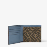 Wallet with eight interior card slots and two compartments for banknotes. Flat pocket on back. Made of blue leather with brown FF Canvas details. Metal FF Squared motif with a palladium finish. Made in Italy Composition: 100% calfskin, 45% cotton, 40% polyurethane, 15% polyester, inside: 62% cotton, 38% polyurethane Product Code: 7M0356AFF2F1SCC