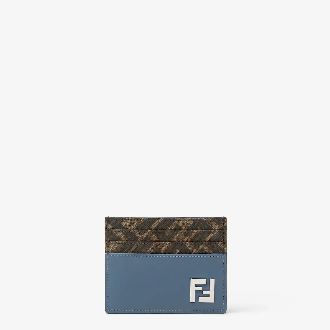 Card holder with six slots and flat central pocket. Made of blue leather with brown FF Canvas details. Metal FF Squared motif with a palladium finish. Made in Italy Composition: 100% calf leather, 45% cotton, 40% polyurethane, 15% polyester, inside: 62% cotton, 38% polyurethane Product Code: 7M0164AFF2F1SCC