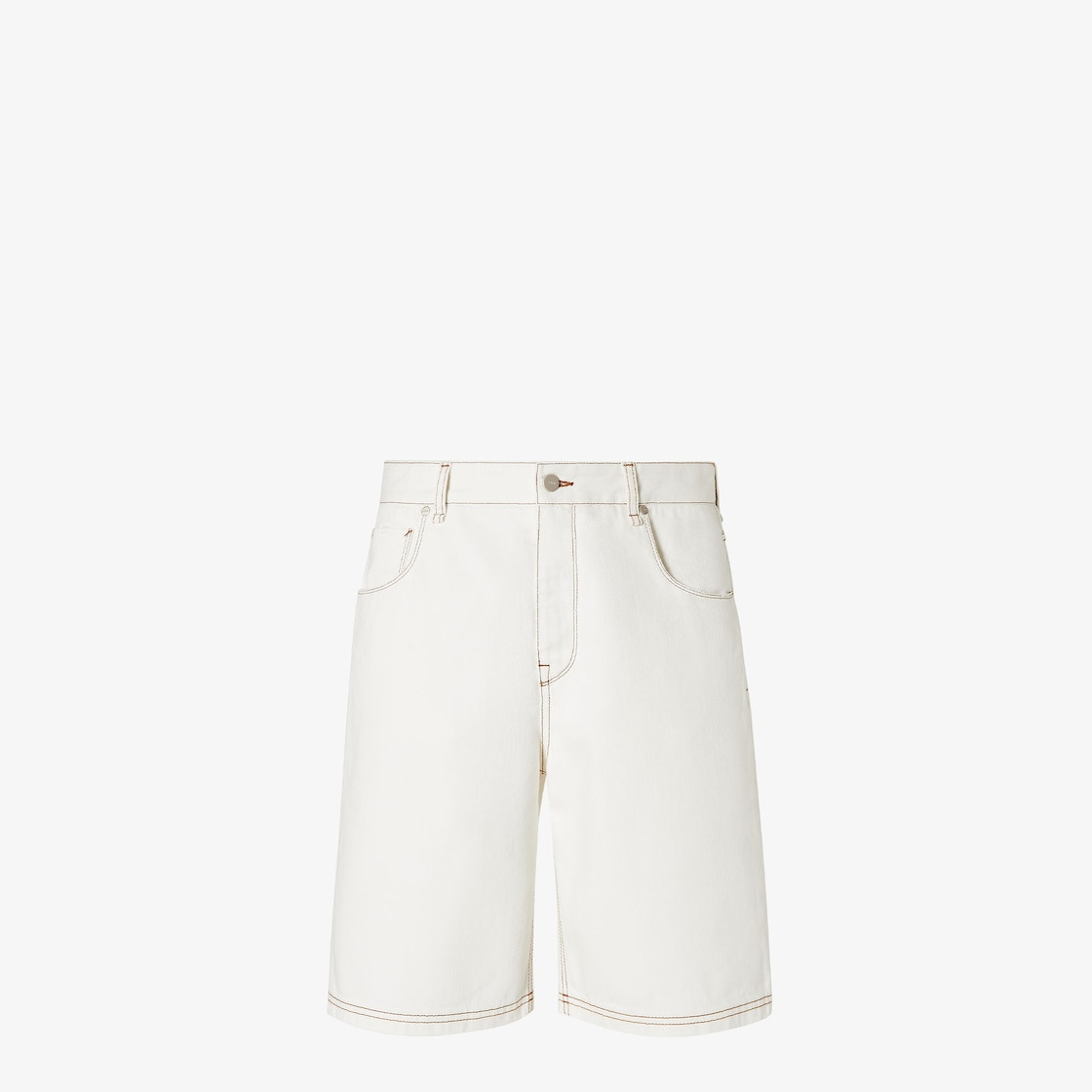 Five-pocket Bermuda shorts. Belt loops at the waist and metal rivets. Concealed zipper and tack button closure. Made of white denim fabric. Finished with contrasting topstitch. Made in Italy Composition: 100% cotton, 65% polyester, 35% cotton Size worn: 48 IT. The model is 186 cm tall Product Code: FLP369AUWZF0WC4