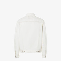 Oversized jacket with shirt collar and patch pockets on the chest. Unlined. Snap closure. Made of white denim fabric. Embellished with metal logo buttons and adjustable straps at the back of the waist. Tan leather label on the chest with an embossed Fendi logo. Made in Italy Composition: 100% cotton Size worn: 48 IT. The model is 186 cm tall Product Code: FW0428AUWZF0WC4