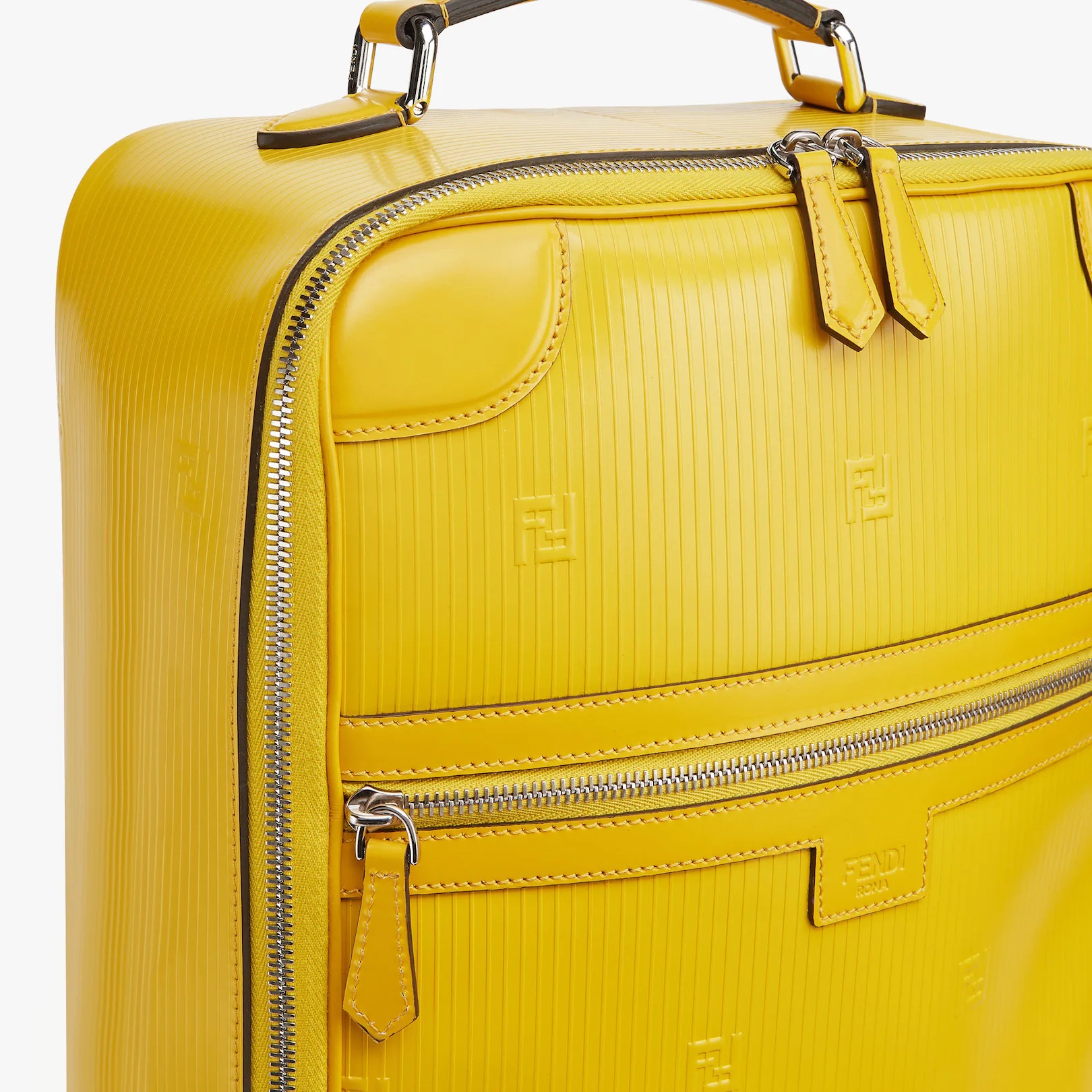 Backpack made of a yellow leather-look rubber material with FF motif inspired by archive Fendi travel bags. Featuring an external zip pocket, zip-around closure with double slider and mesh back. Fabric lined interior with gusseted sides, inner zip pocket and palladium finish metalware. Can be carried by hand or worn on the shoulder thanks to the handle and the tech fabric straps. Made in Italy Composition: 100% Calfskin, 100% Polyester, 100% polyamide, inside: 100% Polyester, 100% Calfskin Measurements: - Height: 39 cm - Depth: 13 cm - Length: 30 cm - Weight: 1.2 kg Product Code: 7VZ062AG0RF0M8A