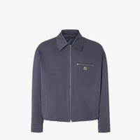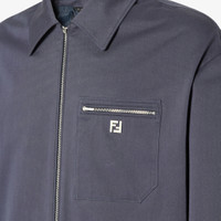 Blouson with a shirt collar and long sleeves with dropped shoulders and cuffs. Side pockets and breast pocket with zip. Metal zip fastening. Made of dark blue webbing. Customized with a palladium-metal micro FF logo applied on the front pocket. Made in Italy Composition: 97% cotton, 3% elastane, fabric inner lining: 100% cupro Size worn: 48 IT. The model is 188 cm tall Product Code: FW1393AUVIF0PTH