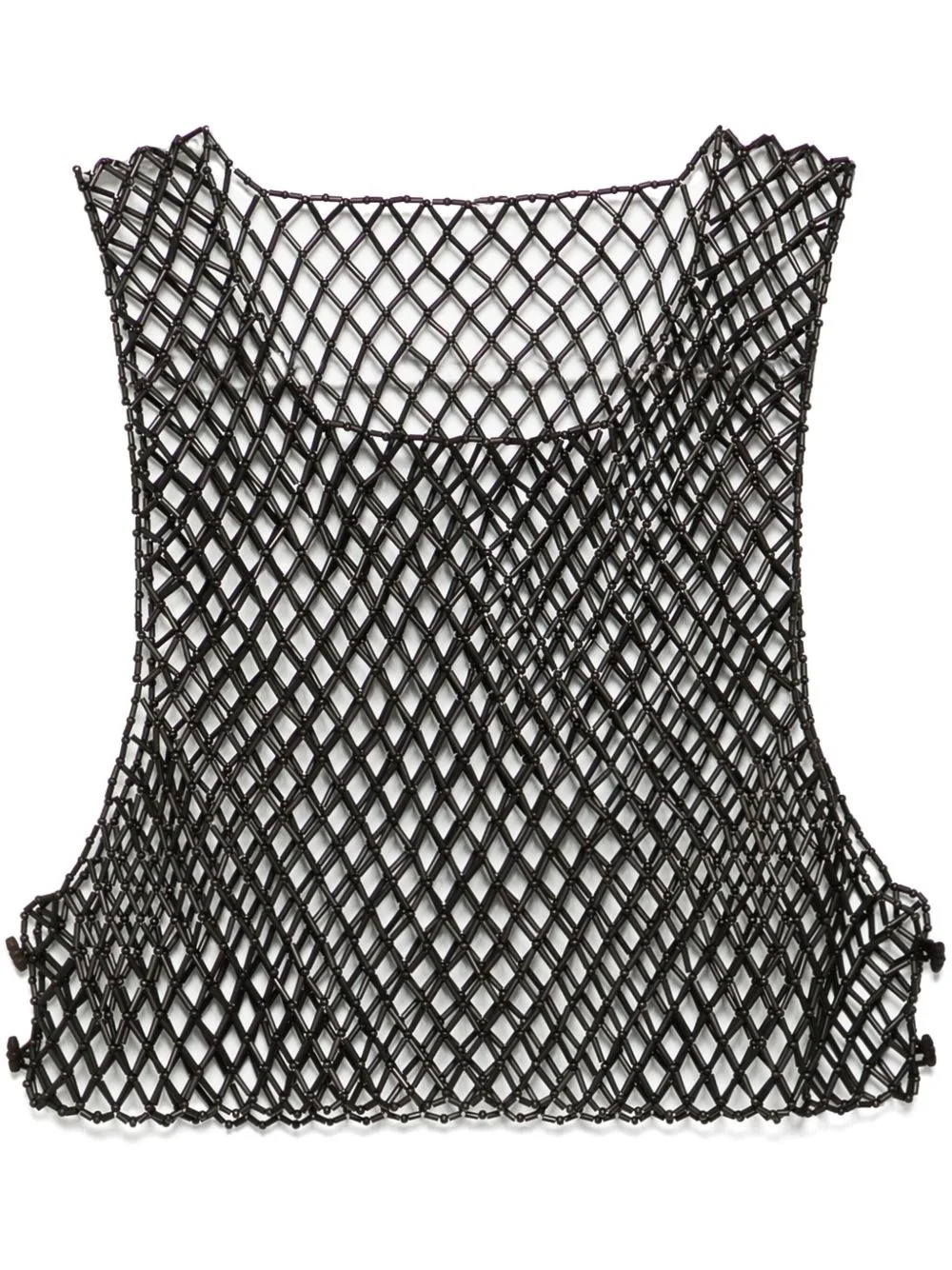 Bamboo vest Highlights - Black - Mesh detailing - Square neck Imported Composition Bamboo 100%