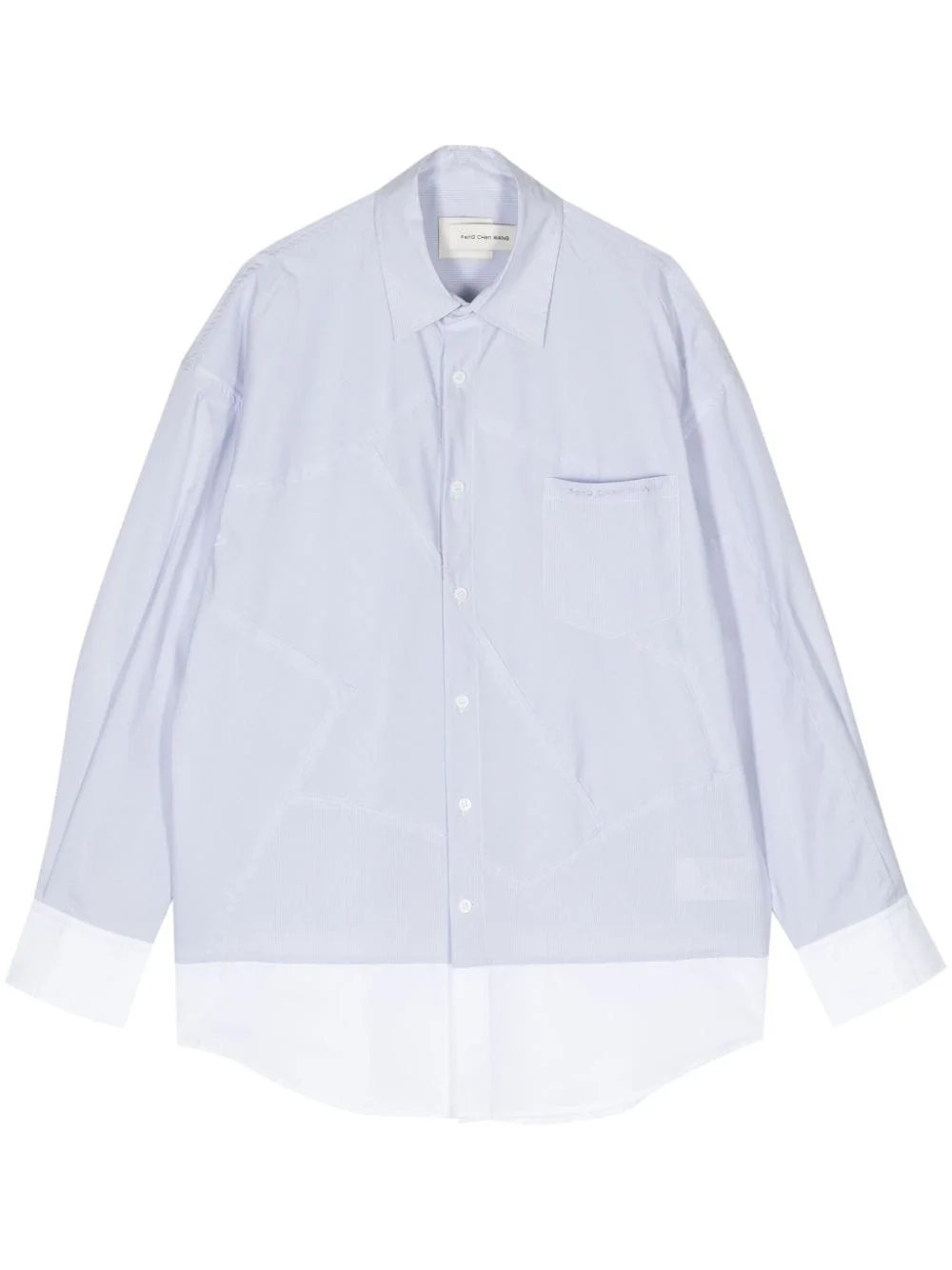 logo-embroidered patchwork shirt Highlights - Blue/white - Stretch-cotton - Patchwork design - Embroidered logo at the chest - Classic collar - Long sleeves - Buttoned cuffs - Front button fastening - Curved hem Imported Composition Cotton 96%, Spandex/Elastane 4%