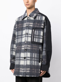 check-pattern shirt Highlights - Navy blue - White - Wool blend - Bold check pattern - Classic collar - Front button fastening - Zip-fastening chest pocket - Two side slit pockets - Curved hem Imported Composition Body: Wool 63%, Polyester 34%, Acrylic 3% SIZE & FIT Model measurements Height 6 ft 2 in(1.87 m) Bust/Chest 31.49 in(80 cm) Hips 37.79 in(96 cm) Waist 27.95 in(71 cm) FittingInformation Designed for an oversized fit, offering additional room throughout Made from a midweight non-stretch fabric This piece fits true to size – take your usual size Washing instructions Dry Clean Only