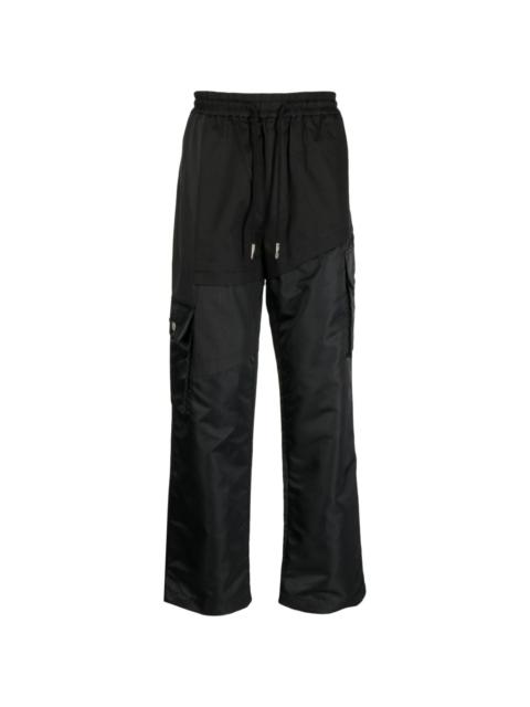 colour-block panelled drawstring trousers Highlights - Black/camel brown - Stretch-cotton - Colour-block panelled design - Seam detailing - Elasticated drawstring waistband - Straight leg - Two side cargo pockets - Two side slash pockets - Rear flap pocket - Elasticated ankles Imported Composition Cotton 97%, Spandex/Elastane 3% SIZE & FIT Model measurements Height 6 ft 2 in(1.87 m) Bust/Chest 34.25 in(87 cm) Hips 36.22 in(92 cm) Waist 29.52 in(75 cm) FittingInformation Designed for a tapered leg, offering a loose unrestricted fit over the leg with a closer fit towards the ankle The elasticated waist allows for a comfortable fit Made from a midweight stretch fabric, this piece offers elasticity and flexibility when worn This piece fits true to size – take your usual size Washing instructions Dry Clean Only
