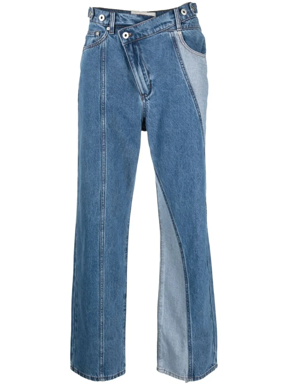deconstructed-design denim jeans Highlights - Indigo blue - Cotton blend - Asymmetric design - Deconstructed design - Silver-tone hardware - Belt loops - Front button and zip fastening - Classic five pockets - Mid-rise - Straight leg Imported Composition Cotton 93%, Polyester 5%, Cellulose 2% SIZE & FIT Model measurements Height 6 ft 2 in(1.88 m) Bust/Chest 36.61 in(93 cm) Hips 35.82 in(91 cm) Waist 27.95 in(71 cm) FittingInformation Designed with a straight leg, these jeans allow for an unrestricted and comfortable fit over the leg Sturdy and hard-wearing, this denim piece offers no stretch This piece fits true to size – take your usual size