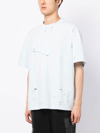 double-layer distressed effect T-shirt distressed effect blue cotton patchwork design straight hem round neck short sleeves Imported Composition Cotton 100% SIZE & FIT Model measurements Height 6 ft 2 in(1.87 m) Bust/Chest 34.25 in(87 cm) Hips 36.22 in(92 cm) Waist 29.52 in(75 cm) Measurement CHEST 50.39 in(128 cm) SLEEVE LENGTH 9.84 in(25 cm) LENGTH 29.13 in(74 cm) Shoulder Width 22.83 in(58 cm) FittingInformation This piece fits true to size. We recommend you get your regular size Cut for a loose fit Made with a mid-weight fabric Washing instructions Machine Wash